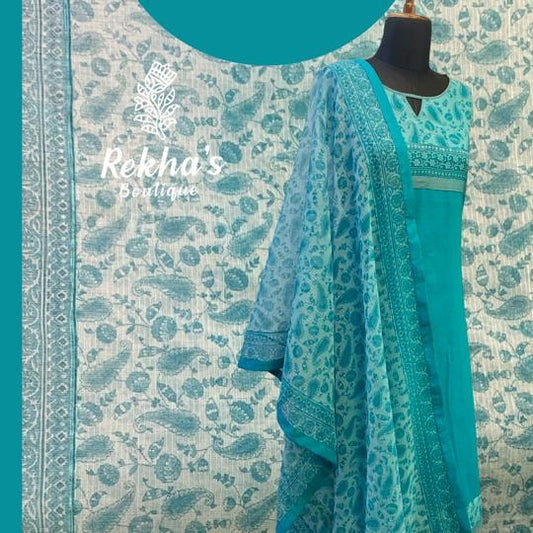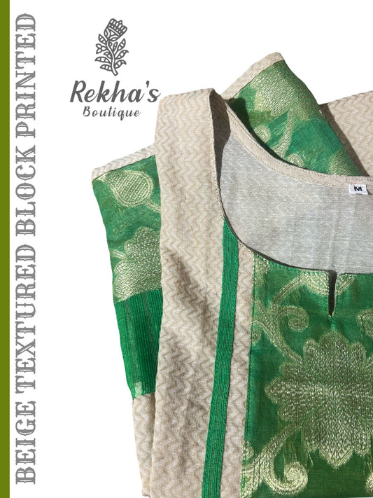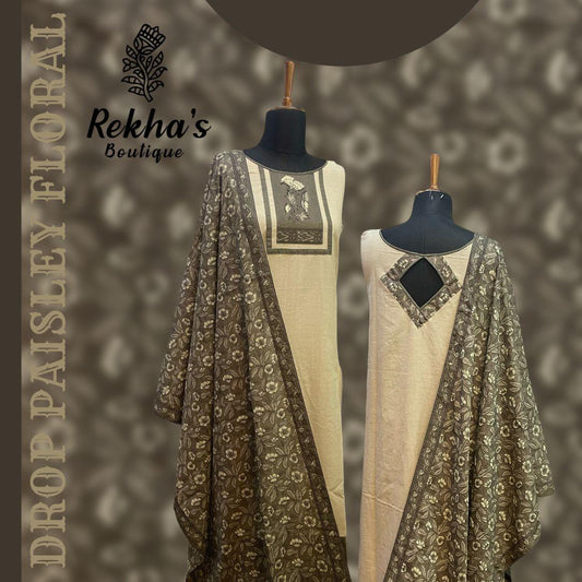 BEIGE & DROP YOKE FRONT & BACK DABBU PRINTED